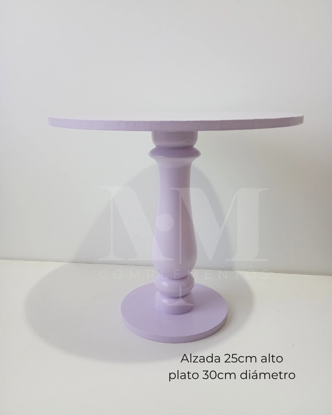 Base elevada de madera torneada a mano, ideal para destacar tortas en celebraciones y mesas principales. Disponible en diferentes tamaños y colores.