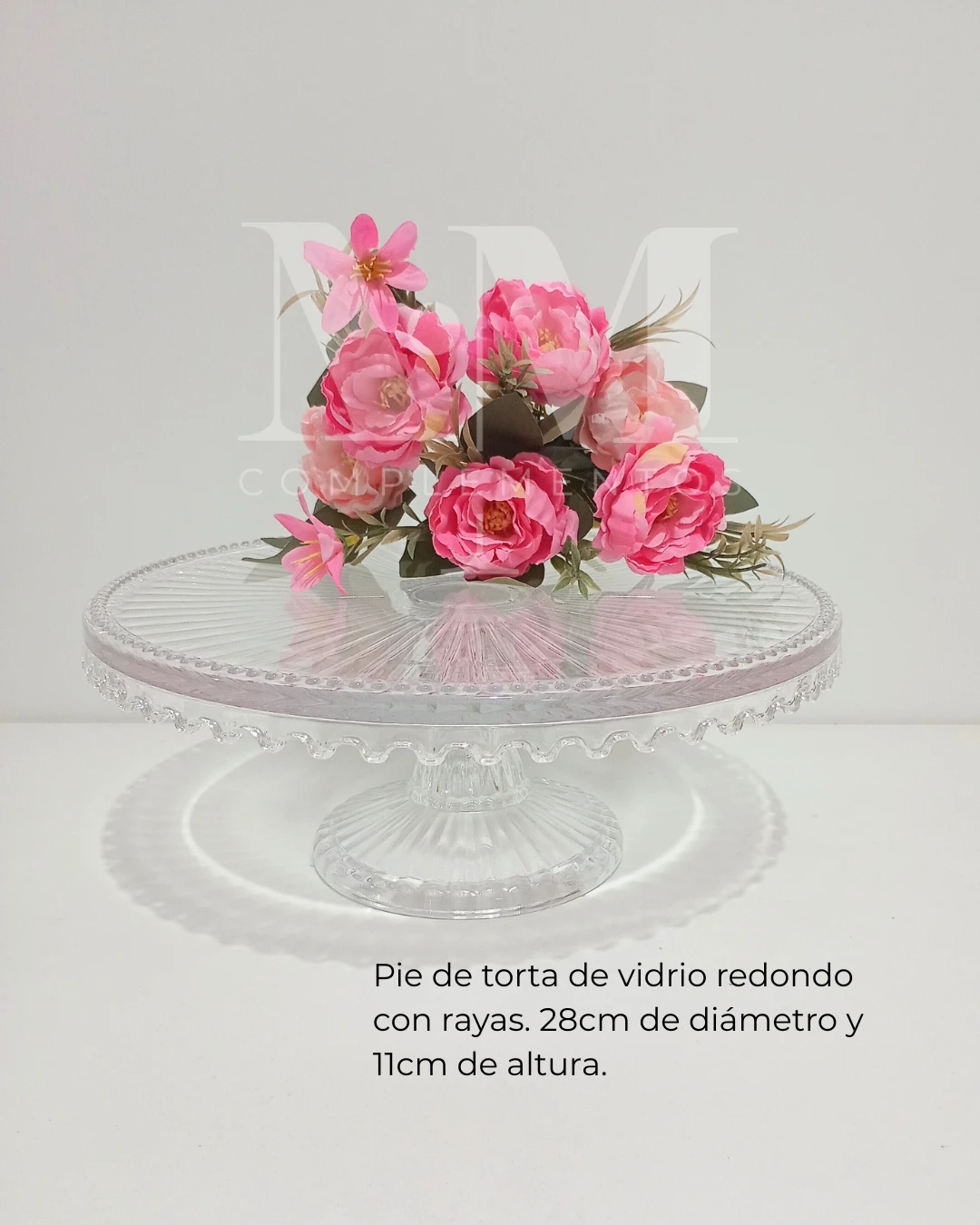 Pie de torta redondo con rayas 28x11cm vidrio